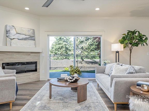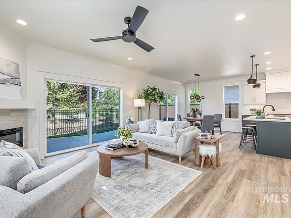 JUST COMPLETED! This move in ready patio home is a 3 suite plan that offers so much flexibility. One primary downstairs and one secondary upstairs along with a room/private bathroom. The kitchen will be the gathering place of this home with a sprawling quartz island, custom cabinets to the ceiling with glass detail, and stainless steel Bosch appliances. The great room offers huge windows allowing the natural light to pour in and gorgeous millwork detail. The electric fireplace saves space and makes the functionality of this room a priority. Plus, with two large glass sliders you can enjoy true indoor, outdoor living and entertaining. The storage space has been maximized in the insulated, fully finished garage. Fully landscaped and the HOA includes all yard maintenance in a gated, low maintenance living community. Close to downtown Eagle, Eagle Island park, Boise river access, and everything you love about Eagle, Idaho.
