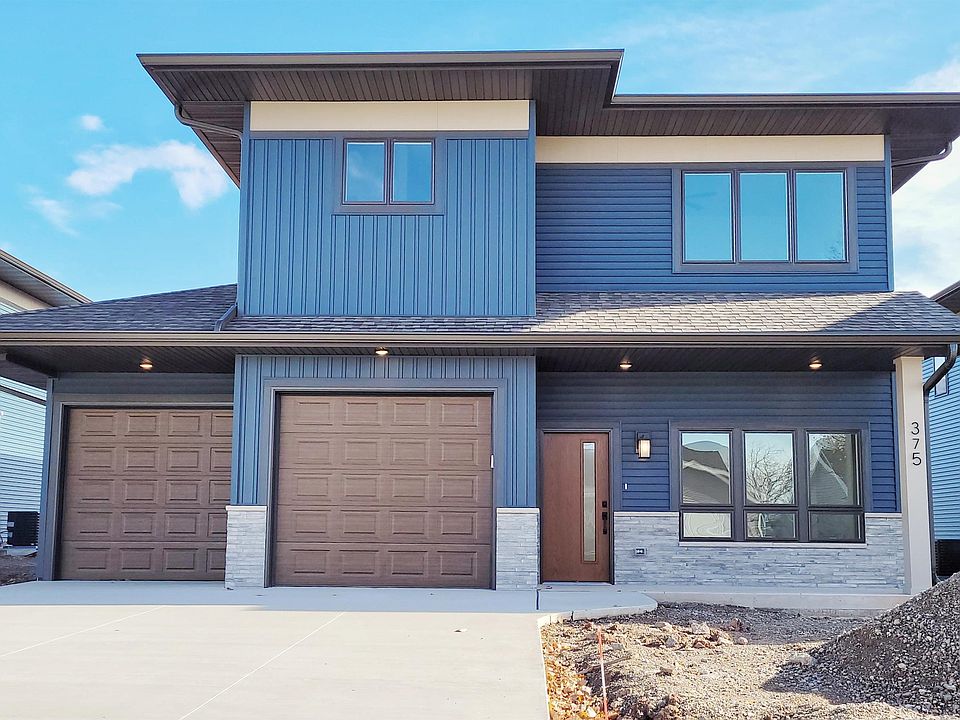 Welcome to the stunning 'Blue at the Trail,' where modern design meets convenience & efficiency. This single-family home offers the privacy of a traditional home with the benefits of a low-maintenance condo lifestyle—no shared walls, plus snow & lawn care included! Enter through a stylish galleria foyer into an open living area w/ a fireplace, spacious kitchen, and large open pantry alcove. Upstairs, find three bedrooms, 2.5 baths, convenient laundry room and a versatile open loft. Bonus Blue at the Trail, every home includes an optional fenced courtyard opening to a common-area park & urban forest, with walking paths leading to the scenic Fox River Trail- 11 acres of private green-spaces. Appliances included. Some building images are renders. Garage prewired for elec heater & EV charger.