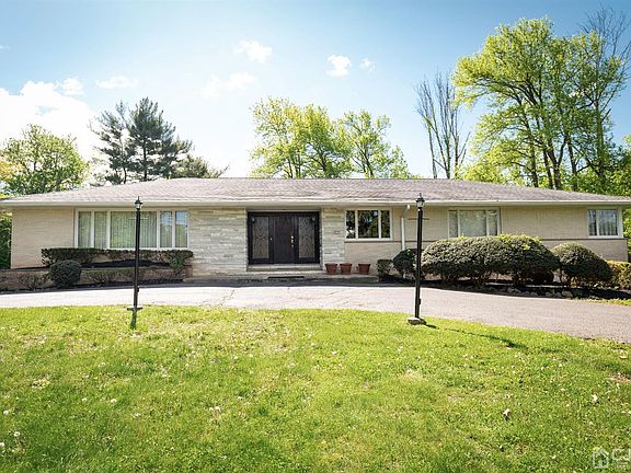 This immense FL Wright-inspired Modern Contemporary almost 3800 sqft raised ranch with an equally sized finished walk-out lower level- totaling over almost 7600 sqft of finished space is set back on a beautiful 1.3 acre fully landscaped lot in Colonia's Estate Section. Embassy-sized rooms. 5 master-sized bedrooms, 5 bathrooms + 2 home offices. Large eat-in kitchen with butler's pantry. Family room with custom built-ins, marble fireplace & sliders to deck, with first of 2 built-in barbecues, overlooks the serene, park-like backyard. Finished walkout lower-level w private entry bedroom in-law/guest suite, exercise room, kitchenette, & 1.5 baths. Huge party room/rec room with 2nd fireplace & wet bar has hosted sit-down dinner and dancing for a hundred people. Features include 9ft ceilings, recessed lighting, tray ceilings, separate thermostat in every room for max efficiency. Closets! Pella windows. Hardwood floors throughout. Cedar closet. Laundry room with chute, central vac & mud area. Plenty of parking with enormous circular driveway, Extra wide/long 2 car garage & double carport with built-in shed. Whiz into NYC from nearby Metropark Station. Drive 15 minutes to Staten Island.
