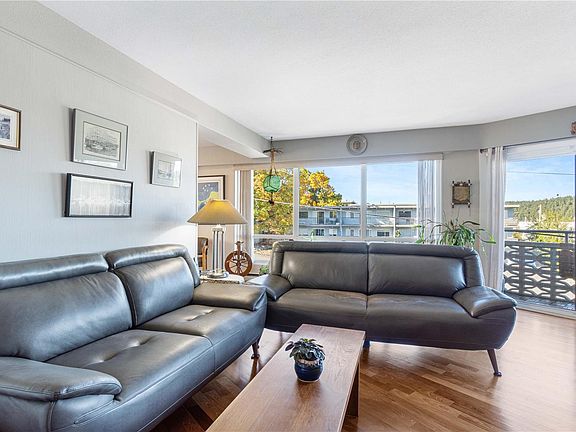 Welcome to the Royal Vista, an oceanside 55+ building in the charming Brechin Hill neighbourhood in Nanaimo. This beautifully maintained 2-bedroom, 1-bathroom condo boasts 1100sqft of living space with Brazilian cherry flooring throughout the main living area, stainless steel fridge and stove in the kitchen, a spacious dining area to entertain your guests, and a second bedroom complete with a Murphy bed to host any overnight visitors. Natural light fills the home through the large windows which also allow you to take in the stunning panoramic views of the ocean, marina, and nearby Protection and Newcastle Islands. Watch the boats and seaplanes come and go from your covered deck or access the Nanaimo Harbourfront Walkway which is just steps from the building's entrance. Close to beaches, trails, cafes, and local shops, this building offers a peaceful, community-oriented lifestyle in one of Nanaimo’s most desirable waterfront locations