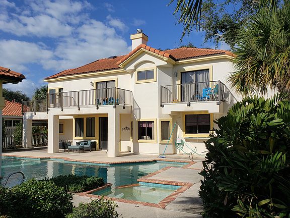 GORGEOUS 5-BEDROOM CLOISTERS HOME WITH INCREDIBLE POOL AND SUMMER KITCHEN! Located on a peaceful, tree-lined street in The Cloisters, this 5-Bedroom, 2.5-Bath home is a hidden gem. Featuring over 3000 square feet of living area, this home has 4 bedrooms upstairs, including a huge master suite with a sitting room, large bathroom, two walk-in closets, and a balcony. There are 3 other large bedrooms upstairs, along with another bathroom, and 2 more balconies. Downstairs includes a living room, family room, formal dining room, 5th bedroom, half-bath, kitchen, and 2 wood burning fireplaces. Outside is perfect for relaxing or entertaining. There is a huge pool and spa and a covered summer kitchen with a gas grill, refrigerator, TV. There is also an outside bathroom with a shower. Beyond the pool is a dog run area and a lake. This property also includes a 3 Car Garage, a new pool pump and filter, an AC system that is still under warranty, and a newer roof. Call Chris Martin at 321.543.437