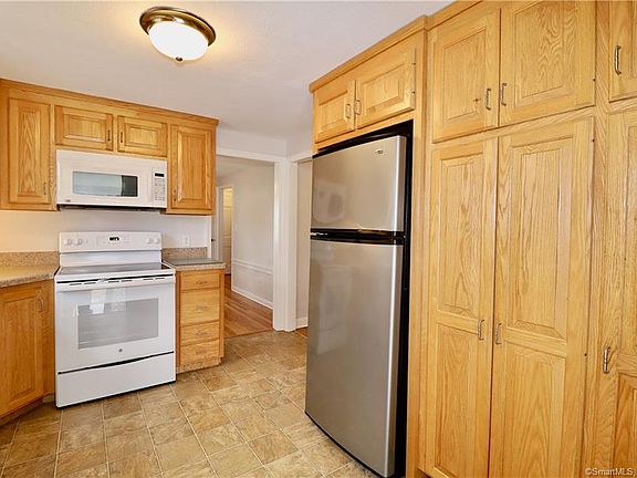 This charming 3 bedroom, 1.5 bath cape is move-in ready and just waiting for it's new owners to love it like the current owner has for many years. Freshly painted, inside & out. Refinished hardwood floors on the first floor. You'll love the remodeled kitchen plenty of cabinet space under mount lighting, a tall pantry with pull out drawers, plus a brand new stove The dining room is accented with a chair rail & has a deep closet offering added storage for large kitchen appliances & serving dishes that will fit nicely on all the shelves. The living room is filled with natural light from the bay window & has a wood burning fireplace to keep you toasty warm on those frosty evenings. A bedroom & full bath round out the first floor. The second floor offers 2 bedrooms & a nice sized half bath. The full basement is unfinished, but can be easily updated to add more space for a play area or set up your exercise equipment there. You'll appreciate the energy efficient gas heating system a new liner. Outside, you'll love the covered porch overlooking the deep back yard. Keep your car out of the elements in the detached one car garage. Commuting is a cinch from this location Walk to the bus stop or grab a ride on CTFasttrack. Plenty of shopping & dining options nearby. Just steps from the popular Charter Oak International Academy 5 minute drive to Blue Back Square & Westfarms Mall. Welcome home