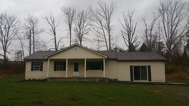 3 bedroom 2 bath ranch home remodeled with new paint, flooring, and furnace. Front porch, rear deck and large detached garage.