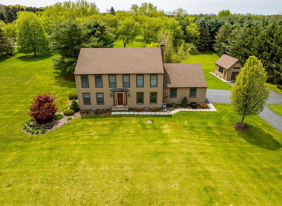 Welcome to 375 Parrish Rd. located in the town of Mendon! This 4 bedroom colonial resides on almost 3 acres and has Honeoye-Falls Lima schools. Offering over 2,800 sq ft - large living room, family room with gas fireplace, 1st floor laundry and office. Eat-in kitchen has granite countertops, pantry and all appliances including a built-in Viking gas cooktop range. Entertain or relax on the oversized deck and patio space in back. Endless storage in basement, garage and outbuilding (24' X 14'). Additional features include; Nest thermostat, interior /outdoor built-in speakers, crown molding, custom window treatments, closet organizers, central vacuum system and many more! Newer roof (2017), A/C (2018), painted deck (2023) and recently sealed driveway (2023) Great location with access to golf, shops, restaurants and winery all within a few miles! Delayed showings until Thursday May 18th at 10am. Delayed negotiations begin on May 23rd at 1pm.