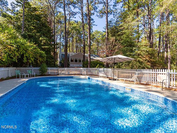 A rare opportunity in the highly desirable Knollwood Heights neighborhood! Single level, well maintained brick ranch with that Mid Century Modern feel nestled on 1.85 acres. The current owners partially remodeled the home in 2011 to include new windows, deck, sun room expansion and kitchen. This stately home offers amazing living & dining spaces, large bedrooms with private baths and two fireplaces. Outside you will find a beautifully landscaped yard with stone walkways, a saltwater pool tucked behind a white picket fence, and there is even a shuffleboard court for entertainment! The location cannot be beat, with short drives to both downtown Southern Pines and the Village of Pinehurst. Just .3 miles from the driveway you will find the entrance to Elizabeth High Rounds Park, White Hall at Reservoir Park and Reservoir Park a 326 acre park open to the public. This park currently offers 2+ miles of trails with more in progress that connects to the Southern Pines Greenway system, an 18 hole Disc Golf course, and a 95 acre lake for fishing, kayaking and paddle boarding enjoyment. Other updates include new pool liner and salt cell and new heat pump in 2023. Currently installed Viking Wall Oven and GE Advantium Oven are not working. Seller is offering a $5,000 credit to buyer towards new ovens. Termite Warranty in place with Canady's through October 2025.