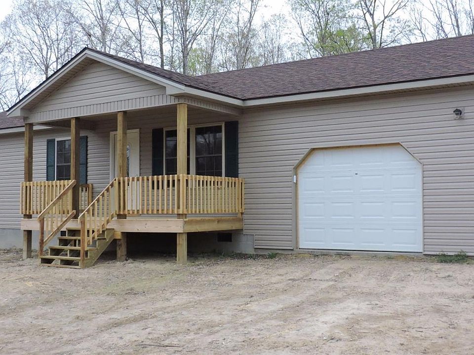 BRAND New Home nestled in the woods for privacy, hard to find, that is nearly completed sitting on 3+/- Acres! Home offers Living Room with Gorgeous Hardwood, Nice roomy Kitchen with triple wall Hickory cabinetry. New Dishwasher and Microwave, 3 Bedrooms, 2 Baths, attached Garage covered front and back porches. WANT MORE LAND? Additional acreage can be purchased.