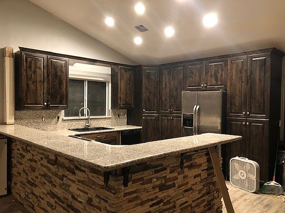 RARE FIND, NO HOA'S!!! COMPLETELY UPGRADED! 3 Bedrooms, 2 Baths, tile throughout, granite countertops, upgraded cabinets. Upgraded base, trim and new toilets. All new interior paint. New AC unit installed 2017. Extra large extended covered patio. Private back yard, w/palm trees, Outdoor rock water feature with built in surround sound and entertainment center! RV parking. Sun screens, stainless steel fridge, stove, microwave and dishwasher. Water softener included. Clean, and ready to move into.