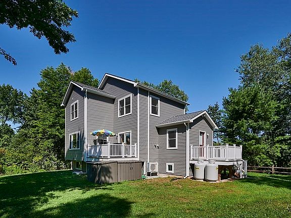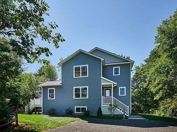 Recently built contemporary home on a lovely private lot in South Amherst. 3 Bedrooms with 2.5 baths and beautiful hard wood floors throughout. the 1st floor features an eat-in kitchen with stainless steel appliances, spacious living room with deck to the back yard, an office/sunroom and 1/2 bath. The 2nd floor has 2 bedrooms and a spa-like full bath with tiled, glass enclosed walk-in shower. Finished lower level offers flexible floor plan for 3rd bedroom, currently used as a recreation room, a full bath with another lovely tiled walk-in shower, laundry area and plenty of storage. High-efficiency boiler for hot water baseboard heating, mini-splits for heat, AC, and on demand hot water. Gorgeous nature views can be had from all levels of this nature-lovers' sanctuary. Near Hampshire College, hiking trails and Mt Holyoke. Beautifully built property in pristine condition.