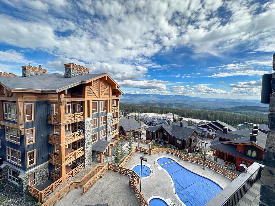 Discover refined mountain living in Stonegate Resort. This exceptional 2-bedroom, 2-bathroom corner residence rises five stories high, showcasing southeast-facing panoramic views of the mountains and resort pools.
