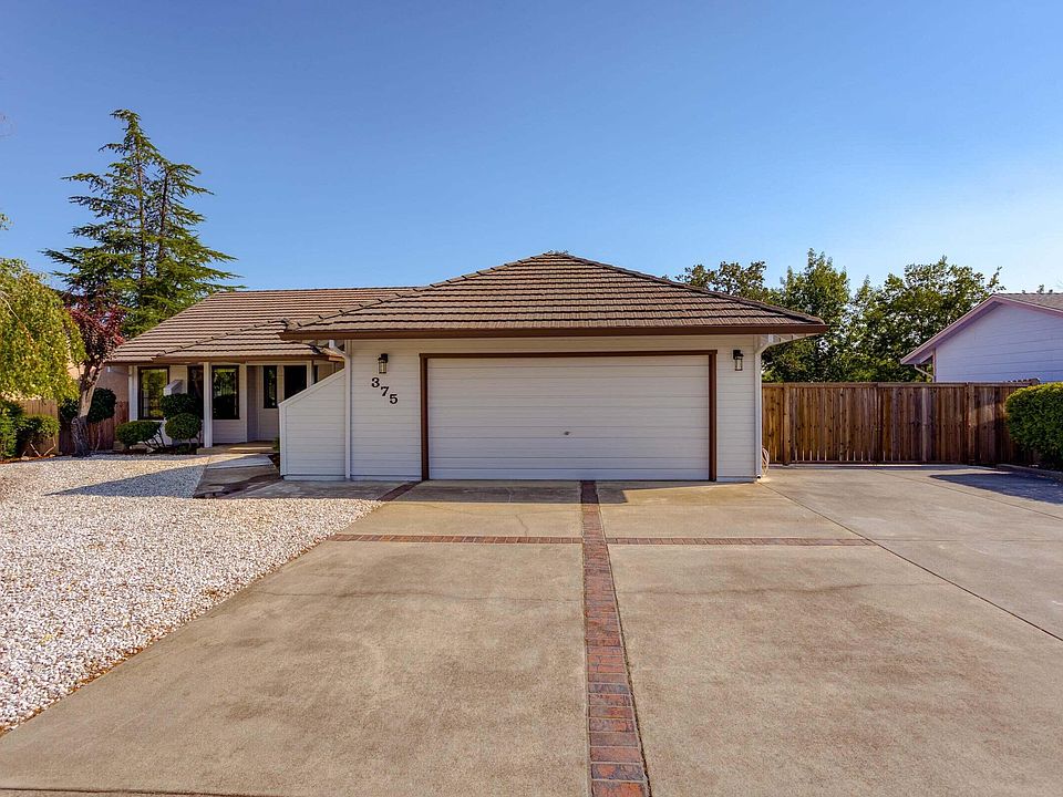 Welcome to this pristine 3-bed, 2-bath home in a highly sought-after location near all the great shopping centers, walking trails right outside your backyard door, and a delightful park nearby. This exceptional home features a spacious living room with a pellet fireplace, a generous owner's suite, a covered patio, fresh exterior paint, and abundant parking, including an extra 2-car garage. The seller also has plans available to convert the detached garage into an in-law unit. Don't miss the chance to see this must-see property in a desirable setting. Bonus, the seller is offering a $5,000 credit for flooring with an acceptable offer.