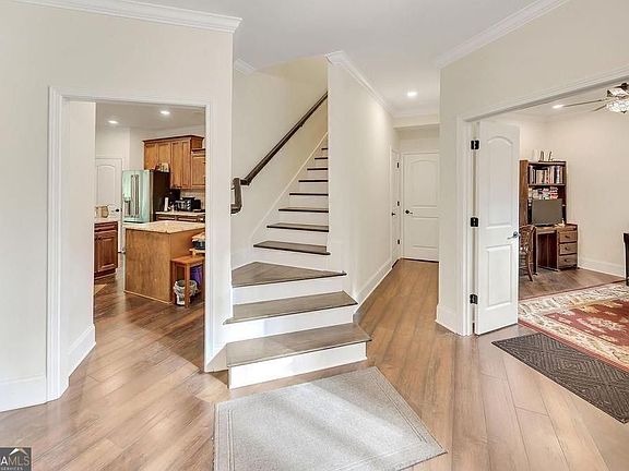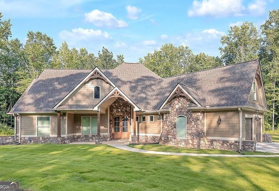 This stunning 4 bedroom, 2.5 bath home blends timeless style with modern comfort. The double front door welcomes you as you enter the home. The inviting living room and dining room showcase two gorgeous stone fireplaces creating a warm and welcoming atmosphere for gatherings. Extensive crown molding, granite, designer fans, 10 foot ceilings and trey ceilings and throughout. The kitchen is a chef's delight with rich hickory cabinets, a convenient breakfast bar, and high performance induction oven. Durable luxury vinyl plank flooring flows seamlessly throughout the home adding beauty and practicality. Extensive stonework throughout the living and dining area. The spacious master suite offers a trey ceiling , dual vanities, and a spa-like shower-only bath. Outside, the home's traditional design is enhanced with charming craftsman details, hardy plank siding, and stone accents. Enjoy outdoor living at its finest on the covered rear porch, complete with ceiling fans and tongue and groove ceiling, and a perfect setup for grilling and entertaining. In addition there is 450 foot well with spring water. Handicap friendly. 200 amp service panel for future expansion for car chargers or hot tub.