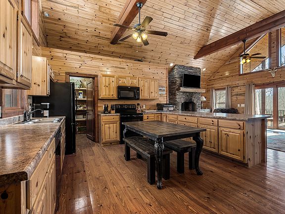 Gorgeous Center Hill Lake rustic cabin nestled on 1/2 wooded acres with breathtaking views of nature. With its tongue and groove ceilings, walls & hardwood flooring, you will instantly feel the cozy and rustic charm upon entering. The huge custom stone fireplace in the great room adds a touch of grandeur and invites you to relax & unwind. The eat-in kitchen has a large pantry with all kitchen appliances, washer & dryer remaining. The perfect place as your vacation home or your primary home. Relax on the back deck that is equipped with a hot-tub & enjoy the peacefulness of Center Hill Shores. Located only 10 miles from Hurricane Marina, making it easy to access the lake for various water activities and in close proximity to I-40. (Buyers and buyer's agent to verify all pertinent information) House comes fully furnished, so you can simply move in and start enjoying the cabin life right away. The community also provides boat storage, dog park, and playground/picnic area & trails to lake.