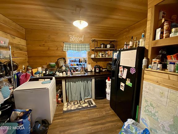 This cozy, rustic cabin on 12.4 wooded acres, with mature hardwoods, is a hunter's dream! This beautiful property is so quiet and peaceful! The property borders the Oconee National Forest so there is no chance of anyone building next to you. Also, it is possible to hunt on the National Forest land as well. The cabin's interior features real wood ceiling and beautiful rough sawn timber walls. There is also a partially completed third bedroom with the roof and wall studs already in place. If an additional bedroom is not desired, this area could be screened in as a large porch. This cabin could also serve as a great starter or retirement home for a single person or couple who desire a quiet, secluded, natural environment.