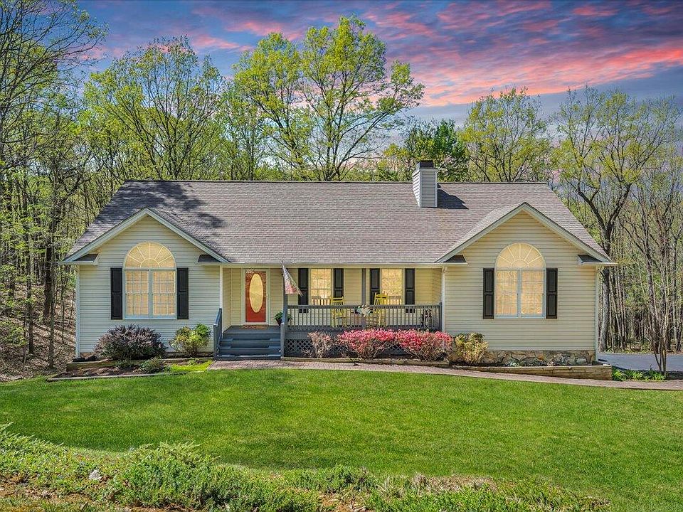 Introducing 375 Silver Shadow Rd. - a stunning retreat nestled on Windy Gap Mountain in the sought-after Wedgewood Estates community of Hardy, VA. This breathtaking 4-bedroom, 3 full-bath home is situated on a sprawling 5.50-acre lot, offering privacy and tranquility at every turn. Step inside to discover an elegant entryway with brand new Hickory Hardwood floors that flow throughout the main level. The spacious living room is flooded with natural light, creating a warm and inviting atmosphere for entertaining guests or relaxing with loved ones. The gourmet kitchen boasts sleek granite countertops, stainless steel appliances, and ample cabinet space, making meal prep a breeze. Enjoy dining al fresco on the back deck, which has been freshly painted and overlooks the lush greenery of the of the property. Retreat to the luxurious master suite, featuring a stunning tray ceiling, walk-in closet, and a spa-like master bathroom complete with a jet tub and walk-in shower. Three additional bedrooms provide ample space for family and guests. The pride of ownership is evident throughout the home, with recent updates including a new HVAC system and driveway resurfacing in 2023. The front porch and back deck have also been freshly landscaped and painted, adding to the home's stunning curb appeal. Tranquil stream that meanders through the back of the property, offering a peaceful escape from the hustle and bustle of daily life. Don't miss your chance to own this remarkable property in the heart of Windy Gap Mountain. Book a showing today and experience the perfect blend of luxury, comfort, and privacy that this exceptional home has to offer.