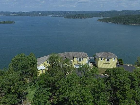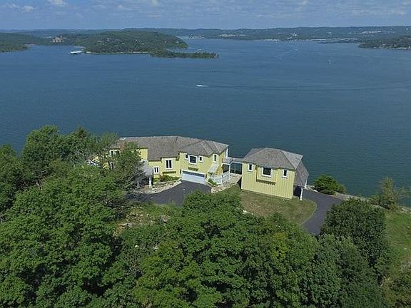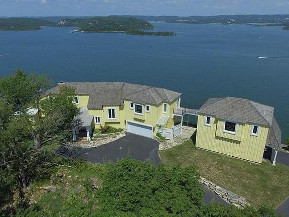 Welcome to the MOST UNIQUE LAKEFRONT HOME with the MOST SPECTACULAR, PANORAMIC VIEWS ON GORGEOUS TABLE ROCK LAKE! AND 2 AVAILABLE BOAT SLIPS! All on 1.5 GATED, PRIVATE ACRES, off a blacktop road. Your 2 LEVEL home is NEAR ALL TOWN CONVENIENCES. IT IS AN EXCEPTIONAL, UPDATED, QUALITY-BUILT HOME. So SOLID! Use of railroad bridge wooden beams, TRIPLE PANE windows, 3 HEATING systems, & 3 FIREPLACES for low utility bills, a DEEP WELL for great tasting, non-chemical water! SOME OTHER FEATURES ARE: OPEN FLOOR PLAN, over 4100 sw. ft., 2 separate stair cases to the Master BR and another BR, 3 LIVING AREAS, 3 Bedrooms, 6 baths, Office (or 4th bedroom), separate GUEST QUARTERS with OWN BATH. Corian counter tops, Big PANTRY ROOM, great storage, ceramic tile floors. 2 DINING AREAS, LIBRARY.