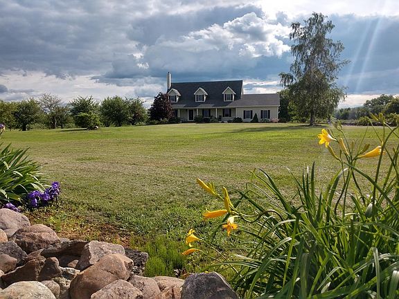 Views & Curb Appeal Abounds! Home sets off road on 5 acre lot in nice country setting w/mountain & orchard views. Stone walls. Beautifully designed, well-maintained home w/wood & tile flooring. 6-panel wood doors. Kitchen has breakfast nook & ample cabinet storage & counter top work area. Living room has cathedral ceiling & gas fireplace. 1st floor Master bedroom w/deck access, walk-in closet & bath w/newly tiled shower & double sinks w/granite vanity tops. Finished basement has family/game room & 1/2 bath. Large back deck. Brick paver walkway. Covered front porch. Separate 2-car detached garage. Nicely landscaped. Newer roof & on-demand heating system. Minutes from schools & Hamlet of Peru.