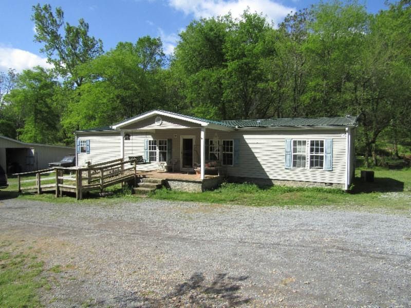 39.37 ac with everything! 3BD/2BA Home on permanent foundation, 2400 sq ft, formal dining room, sunroom, stone gas log FP, built in entertainment center, vaulted ceilings, custom molding, French doors, open concept kitchen-living room, large kitchen w/nook, Jacuzzi tub in MB , handicap ramp, covered front porch & back deck. 1 car garage, 40x40 pole barn w/loft, several outbuildings, 30X40 horse barn w/3 stalls, chicken coup, Trace Creek runs thru property, pond, streams & springs thru out roperty. Cave up at the top with spring, unfinished hunters cabin, rock formations, mtn views, loads of wildlife w/excellent hunting, roads throughout (deeded easement to the back side & top & to cabin on the property).