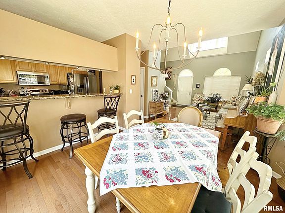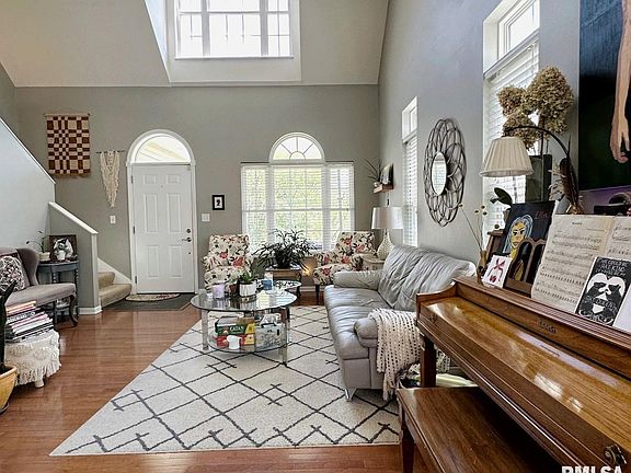 This modern home in the Unity Point School District is full of luxurious amenities and unique features. Immaculately landscaped lawn with a vinyl white privacy fenced backyard. The attached 2 car garage entryway leads to ½ bath, kitchen and mud room that are all finished with stylish cork floors. The kitchen boasts all stainless-steel appliances, stainless pot rack, many cabinets, large basin sink, and granite countertops with a built-in granite breakfast bar looking into the dining room w/large chandelier. The dining area joins the open living room and front entryway that opens to the spacious living room with 20’ vaulted ceilings w/ hardwood flooring. The Master Bedroom is on the main floor and features a walk-in closet, beautiful bath w/ double sink, and marble floors. Upstairs are three bedrooms, a full bath, linen closet, and upstairs laundry room with closet and cork floors plus an XXL capacity LG stainless steel washer and dryer set! The backyard offers a deck, covered concrete patio, and trampoline. The basement is unlike any other, poured 9’ ceilings with egress, with a 16”x30’ I-Beam. 3D projector theater room, music studio, office or (bedroom or yoga space), storeroom, half bath w/ option of adding an additional shower. Detached garage w/ heavy duty shelving. Lightning-fast gigabit Internet. One yr. Home warranty provided. Most furnishing negotiable. $365,000.00