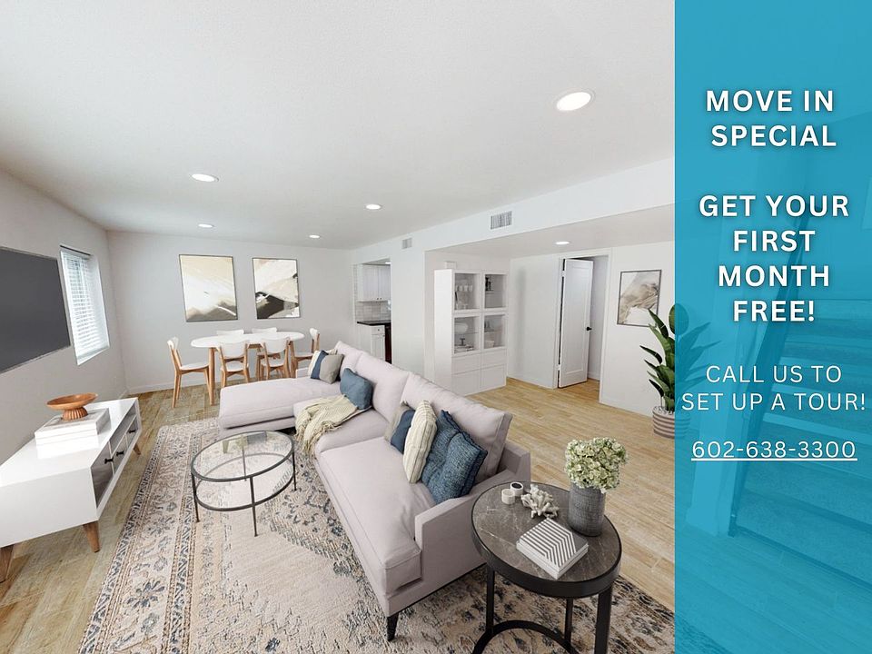- Exterior features: , APS Electric, Brand New Kitchen Cabinets, Brand New Kitchens, Chandelier Above Staircase, Downtown Phoenix, Electricity not included in rent, Fully Renovated & Upgraded, Melrose District Living, Mirrored Closet Doors, Move In Special, Move in Special 1 MONTH FREE, No Smoking, One Month Free, Peaceful & Quiet, Quartz Counter Tops, Stainless Steel Appliances, Tile Backsplash, Two Story Apartment, Utilities fee required