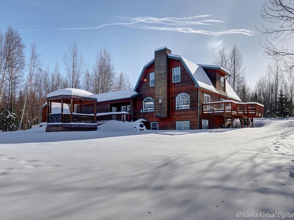 This beautifully remolded and highly upgraded home is a rare find within the Wasilla Belt. Just under 2 acres and sporting: A gourmet kitchen w/ 3 ovens, granite counter tops, Hickory cabinets, 5 Burner gas stove AND a Pot Filler Faucet! Special cabinet for kitchen aid appliance. Family rm, Weight rm, craft rm, reading rm; full service bar, sauna, jacuzzi, gazebo, decks and house matching sheds.