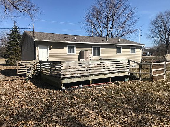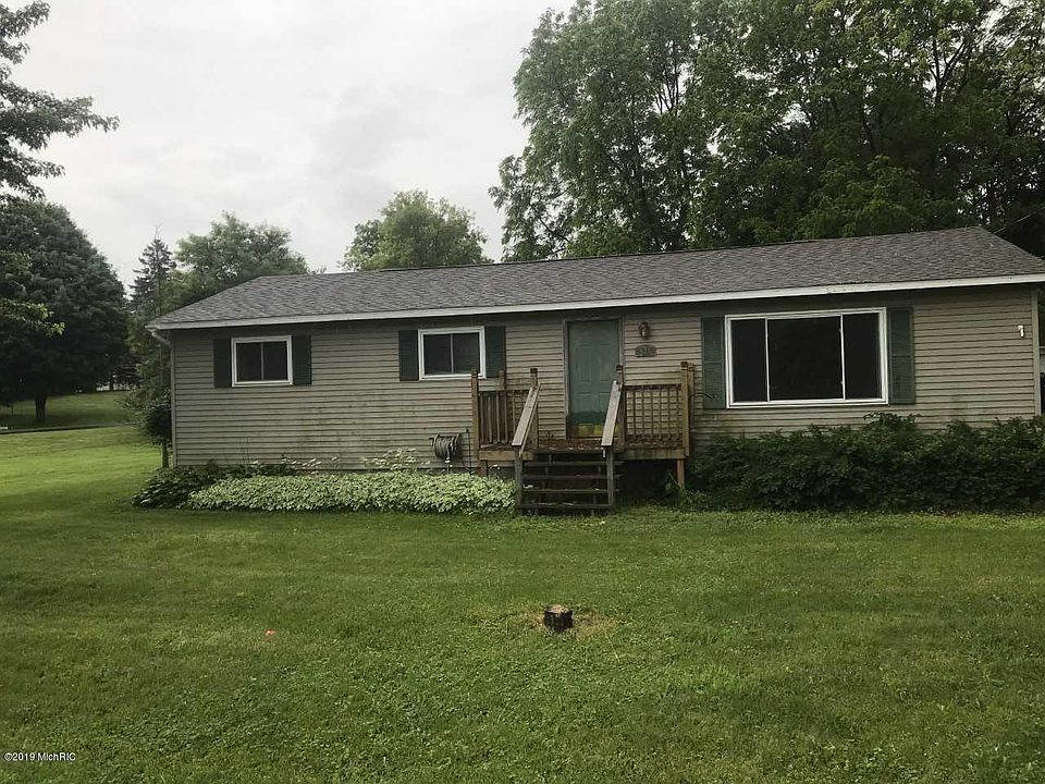 3 bedroom 1 bath Ranch sitting on large city lot in Remus, Full unfinished daylight basement 20 x 20 detached garage Large rear deck, blacktop drive