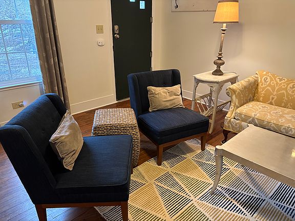 Available NOW! Discover the charm of this unique historic property nestled in a beautiful, park-like environment. This spacious one-bedroom unit features original hardwood floors, an eat in kitchen, full bath & plenty of windows to bring in natural light. Enjoy ample storage with a walk-in closet and unwind on your private back deck, perfect for morning coffee or relaxing evenings. Fully furnished and move-in ready with dishes and linens provided for your convenience.Ideally situated just 10 minutes from downtown Asheville and 5 minutes from UNCA, with easy access to a nearby bus line, this location offers both tranquility and accessibility. Additional amenities include on-site shared coin laundry and off-street parking. Sorry, no pets. $1,250 for a 1 year lease for 2 occupants, $1,200 for 1 occupant - includes Water/Sewer & Digital TV. May be available shorter term. Tenant responsible for electric & gas. Sorry, No section 8 or HUD. $1,250 per month or $1,200 per month for one occupant. Year lease preferred but may be available shorter term. Includes water/sewer/trash. Tenant responsible for electric & gas.