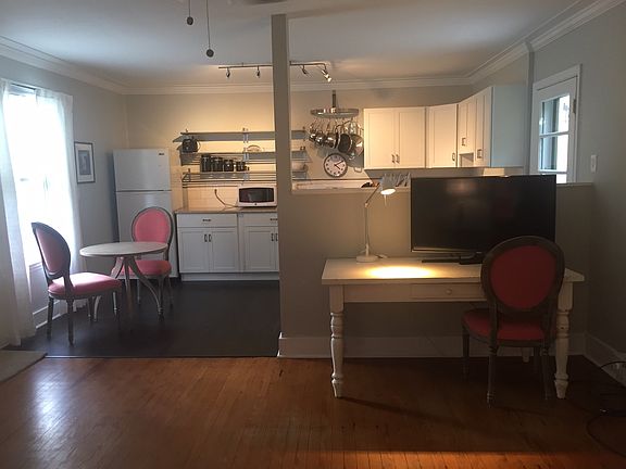 Unique historic property with a beautiful park-like setting. This one bedroom apartment is fully furnished, renovated kitchen and freshly painted with hardwood floors, dishes and linens provided. Private patio behind the unit. Includes a Smart TV with a digital antena installed. Convenient location in North Asheville and on a bus line. Laundry on site. Water/sewer and up to $50 of electric included and off-street parking. $990/month with 7-11 month lease, $950 for a year lease or $1100 for 3-6 months. **SPECIAL** Move in now & the month of July is FREE with a 6 month or longer lease ONLY. No pets please. Located between Asheville and Weaverille and about five minutes from UNCA. Please call 828-254-6270 for more information. Rates are subject to change based on season and availability. Owner is a NC Licensed Broker $40 Application fee (per adult) Security Deposit Water and up to $50 of electric included in rent.