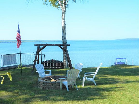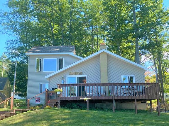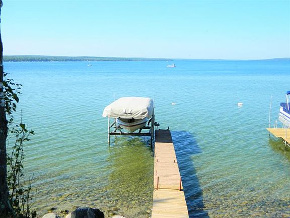 LOOKING FOR A WATERFRONT HOME ON HUBBARD LAKE THAT IS IN THE BUDGET? THIS IS IT! Here is a great summer home on Hubbard Lakes Southeast Shore! Offering 20 feet of your own private waterfront, just steps away to your own dock, for your own boat and hoist. 1,552 square feet, 4 bedrooms, 2 Bath, tongue and groove pine throughout, giving you that up north atmosphere, with the most amazing views of the lake. Ceramic tile bathrooms, and spacious 12 by 23 lakeside deck, off the living room door wall. Just off the kitchen and up the beautiful hardwood stairway is where you will find the, 11 by 14, master bedroom with panoramic lake views, it also has a 5 by 8 walk in closet and your own private 10 by 4 bathroom with walk in tile shower. You'll love the 12 by 13 area for additional storage as well. The 16 by 21 living room has a Vermont Casting Natural Gas Free Standing stove that can heat the entire home. 3 Bedrooms, one full bath, and laundry are on the main level. Private back yard with bonfire pit and storage shed. This is a great, affordable, family cottage that is completely updated, and ready for you to enjoy. Home sits on 56 by 110 lot, and lake front lot is 20 by 110. Dock Included. Boat, hoist and home furnishings not included but negotiable. Crystal clear, spring fed, All Sports Hubbard Lake, with hard sand bottom. Gorgeous views of Hubbard Lake and it's mesmerizing sunsets.