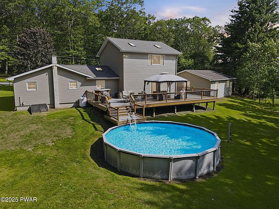 **OPEN HOUSE Saturday September 20th, from 11AM-1PM** Be sure to stop by to tour this inviting property!Welcome to your FULLY UPDATED dream home with LAKE RIGHTS to Welcome Lake! This beautifully renovated 4-bedroom, 2.5-bathroom home offers a perfect blend of modern luxury and country charm. Featuring a spacious 2.5-car garage and an impressive 36x48 pole barn, there's room for all your vehicles, tools, and toys. Inside, you'll love the soaring cathedral ceilings, open floor plan, effortless propane fireplaces, brand-new roof and skylights filling the home with natural light and character. The modern kitchen is a chef's delight with stainless steel appliances, brand-new granite countertops, and stunning cabinetry. All bathrooms are fully updated with premium finishes, offering a relaxing experience. The formal dining room features an elegant trey ceiling, while the huge primary suite provides a serene retreat with space to unwind. The finished lower level adds exceptional living space, featuring a spacious family room with cozy propane fireplace, custom-built bar with bluestone countertop, and new carpeting ideal for entertaining year-round. Step outside to your private outdoor living oasis: an expansive cedar deck with custom-built bar and pool, perfect for summer fun. Additional highlights include a new septic tank installed in 2025 and quick access to Welcome Lake for fishing, kayaking, or peaceful lakeside moments. You'll also be minutes from State Game Lands, Colby Pond, scenic hiking trails, and just a short drive to Narrowsburg, NY, the Delaware River, shops, river recreation, and dining. Centrally located between Honesdale and Hawley--only 20-25 minutes in either direction--you'll enjoy easy access to shopping, dining, and Lake Wallenpaupack. This move-in ready home truly has it all--A MUST SEE!