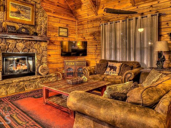 STUNNING LONG RANGE MOUNTAIN VIEW CABIN! This 3 Bedroom, 3 Bath Mountain Retreat is the Perfect Place to Unwind! Featuring a Large Kitchen w/Lots of Cabinet Space and Granite Counter Tops, Open to the Great Room & Dining Area w/Hardwood Floors, Gas Log Fireplace! Main Floor Bedroom, Bath w/Tile Shower and Soaking Tub! Upstairs Master Suite w/Sitting Area! Loft w/Pool Table and Private Deck Overlooking the Amazing Mountain Views. Terrace Level w/Guest Bedroom, Bath & Den/Media Room w/Gas Log Fireplace + Built in Bunks! With 3 Layers of Decks with Plenty of Area to Entertain! The Patio has Hot Tub and Firepit. All within 10 Miles to Blue Ridge! In an Established Rental Program!