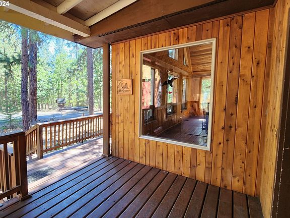 Welcome to your dream getaway! This enchanting 2-bedroom, 2-bathroom chalet spans 2,064 square feet and is nestled at the end of a paved driveway, surrounded by mature ponderosa pine trees. With its blend of rustic charm and modern amenities, this home offers the perfect retreat from the hustle and bustle of everyday life. Step inside to discover a spacious, open-concept living area bathed in natural light from large windows that bring the beauty of the outdoors in. The cozy wood stove adds a touch of warmth and ambiance, making this space ideal for both relaxing and entertaining. The well-appointed kitchen features ample counter space and plenty of storage, ensuring meal preparation is a delight. The home's two generous bedrooms provide peaceful sanctuaries, perfect for unwinding after a day spent exploring the natural surroundings. The master suite includes an en-suite bathroom, adding a touch of luxury to your everyday routine. One of the highlights of this property is the expansive 1,258 sq ft wrap-around porch, featuring a screened-in area that's perfect for viewing local wildlife or enjoying tranquil evenings. Imagine sipping your morning coffee while listening to the gentle rustle of the pines and watching deer graze nearby. For those who enjoy hobbies and projects, the insulated 36x36 detached garage with RV parking offers ample space for your vehicles, tools, and gear. The 20x16 greenhouse is a gardener's dream, providing the perfect environment to nurture your favorite plants year-round. This charming chalet is more than just a home; it's a lifestyle.