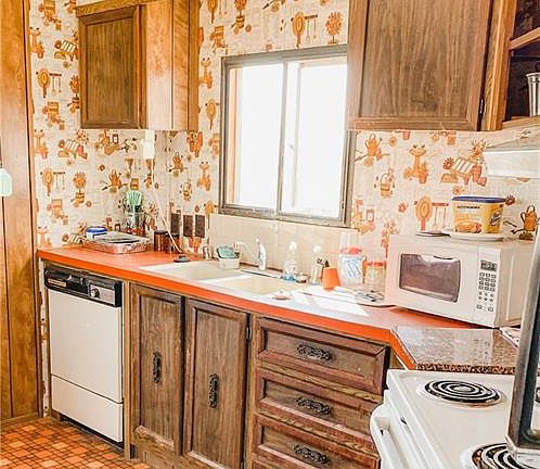 Over 2 acres with vintage manufactured home that has been well maintained and preserved. Close to high school. Great view from the covered, front porch. Spacious living area. Two nice sized bedrooms. Bathroom has separate tub and shower. New carpet. Lots of storage on the property, including a separate trailer and large storage shed. Plenty of room to build or have horses. Close to riding trails. Must see to appreciate!