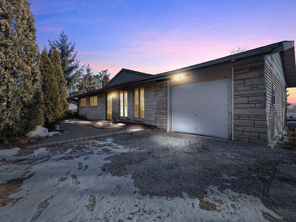 Walk into this gorgeous Ranch home and enjoy open concept living at it's finest. The kitchen, dining room and living room are all open and a great layout for entertaining! The lower level has a rec room and a work shop area with an egress window that can easily be finished off to add another bathroom or bedroom. Walk outside the patio door in the kitchen and enjoy a beautiful newly landscaped brick patio with stunning views. The lot is almost half an acre and has an enormous heated pole barn 20x40x16 tall with modine heater, 10x12 overhead door, insulated, heated floors with drain, that is perfect to store all your toys or to run a business out of. Make this charming home yours today before it's gone!