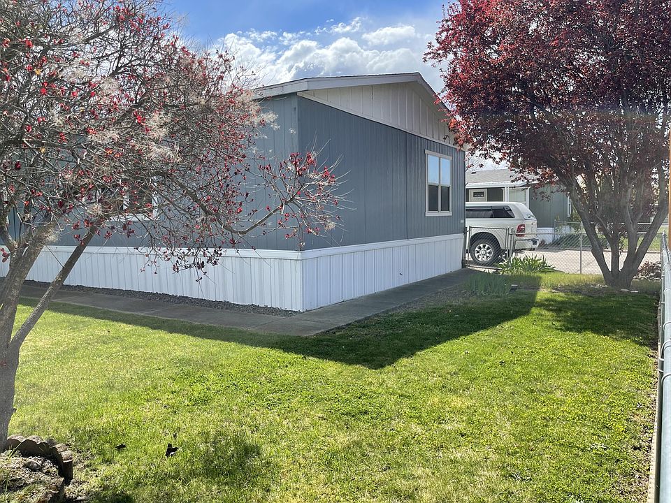This immaculate 1782 square foot manufactured home is located in a very quiet & well kept park in White City. There are 3 big bedrooms, 2 full baths and an open floor plan with vaulted ceilings for spacious ambience. The main bedroom with bath is in the back, the other 2 are in the front. It is newly painted, has a newer roof, and newer carpet! Plus new decking front and back. All the bedrooms have walk in closets! There is a huge pantry in the kitchen and a separate laundry room with a cabinet above the W/D. Seller is including range/oven and refer and 2 wall hung TVs. Park rent includes water, sewer and trash. Buyer to confirm new rent rate and is subject to park approval of application. Park allows all ages.