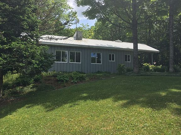 So much to talk about! 107.5 +- mostly wooded acres, abundant w/wildlife on this former Christmas Tree Farm, still lots of trees here to cut, just a bit bigger now. L-shaped custom designed ranch w/incredible beamed cathedral ceilings throught the living room, dining area & kitchen which has Woodmode Cherry cabinets with built in appliances & center work island w/additional sink. Open floor plan allows you to view the 2 sided wood burning granite fireplace from the living room, dining room & kitchen while you cook. There's 3 bedrooms, possible 4th, 2 baths plus a lg storage rm & huge entry foyer for your Tug Hill equipment. Basement has 3 one car garages for cars & tractors. Alternative wood/coal furnace in the basement & plenty of space to store your wood/coal & additional fireplace too.