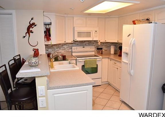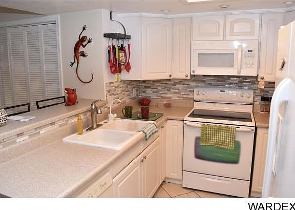 Absolutely stunning custom condo with all the upgrades. Granite look counter tops, tile flooring, double sinks in bath, upgraded appliances, jetted tub/shower combo and even a tiled patio. All this on beautifully landscaped and pine tree studded grounds. Close to pool, spa, and barbecue area and did we mention the home comes with a one car garage? Laughlin Bay Village is within walking distance to the majestic Colorado River and just a short drive to Casinos, Entertainment, Dining and Shopping. Truly a one of a kind home that won't last long. Call today!
