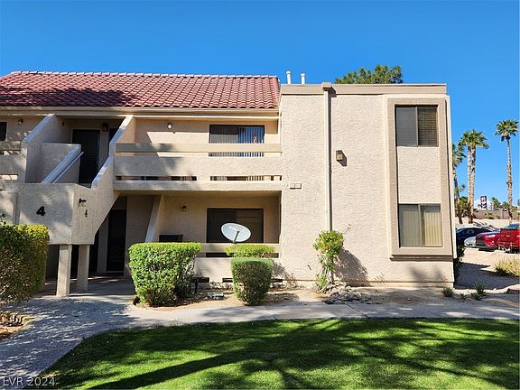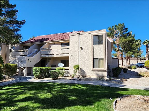 Your own oasis in the desert! Mature landscaping and meticulously manicured lawns welcome you to this upper level 2 bedroom 2 bath condo with private balcony and terrific loft space with its own closet. Inviting living room entry with vaulted ceilings and loft access. Spacious primary suite with private bathroom and extended closet. A second bedroom offers ample room, a closet, and direct access to the second bathroom. Recently replaced A/C and furnace to keep you cool all summer long! Private detached garage and available RV/toy parking, all located within a beautifully maintained gated community with four pools and spas. Just a short drive from the excitement of Laughlin's casinos and the Colorado River.