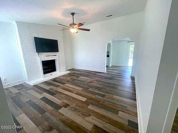 Welcome to 3750 Greentree Circle, a charming gem nestled in Panama City, Florida. This delightful 3-bedroom, 2-full bathroom home boasts an array of features that truly make it a standout. Step inside to discover the elegance of tile floors throughout, enhancing both beauty and easy maintenance. Situated on a serene cul-de-sac lot, this property offers privacy and tranquility that's hard to come by. The allure continues as you gaze upon the wooded acreage behind the home, providing a picturesque backdrop and a connection to nature. The garage is a handy person's dream, complete with a pegboard and workbench, making DIY projects a breeze. No need to worry about appliances, as this home comes equipped with a washer, dryer, and a suite of stainless steel appliances in the kitchen. Freshly painted walls create a welcoming atmosphere, while the fenced backyard offers a safe haven for outdoor activities and relaxation. Stay comfortable year-round with a newer water heater and HVAC system, ensuring your comfort is a top priority. Enjoy the warmth of a wood-burning fireplace on cozy evenings, perfect for creating lasting memories with friends and family. Pella windows not only add to the home's aesthetic charm but also contribute to energy efficiency. Whether you're a first-time homebuyer or seeking a serene retreat, 3750 Greentree Circle has it all. Don't miss out on the opportunity to call this beautifully maintained property your own. Schedule a viewing today and experience the allure for yourself!