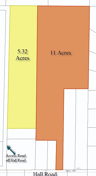 14 Plus Acres located in the Orchard View school district on Hall road. The property consists of 2 connecting parcels. The first parcel is about 5 acres and sits along an access road on the one side. The second parcel is connected to Hall road by a 66 feet wide lot. The property is mostly open with trees the line the outer edges of the property. There is no standing water and the soil is sandy.