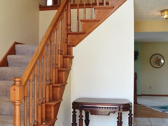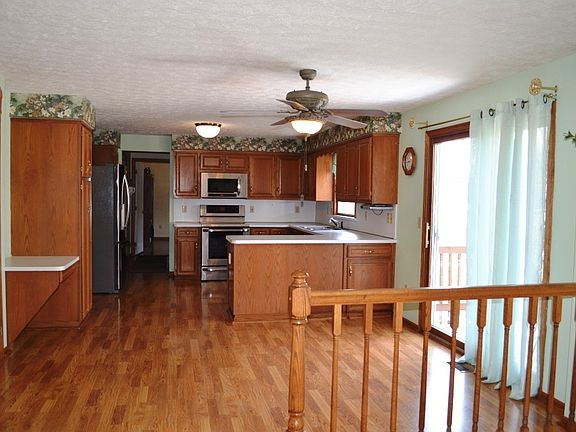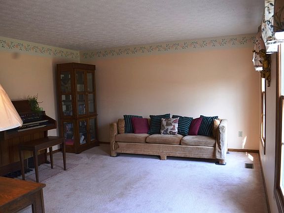 Fabulous custom colonial nestled on over 2+ wooded acres presents spacious living areas and numerous amenities. Formal living and dining rooms flank the gracious foyer. Chef's kitchen boasts stainless steel appliances, separate eating area with sliders to deck, and overlooks the family room with mantled woodburn fireplace. Inviting great room addition boasts vaulted ceiling, skylights, and lots of windows with views of the backyard. First floor bedroom and full bath conveniently located. Master bedroom suite offers large WIC and glamour bath with soaking tub and garden window. Two additional generous sized bedrooms and full bath complete the second floor. Finished lower level features 3 separate rooms including recreation area. Ample storage. 12 course basement. Unilock brick patio. 2 car attached garage and wonderful 4 car detached 24' x 32' pole barn with cement floor. Security system. 1 year home warranty offered. City water available.
