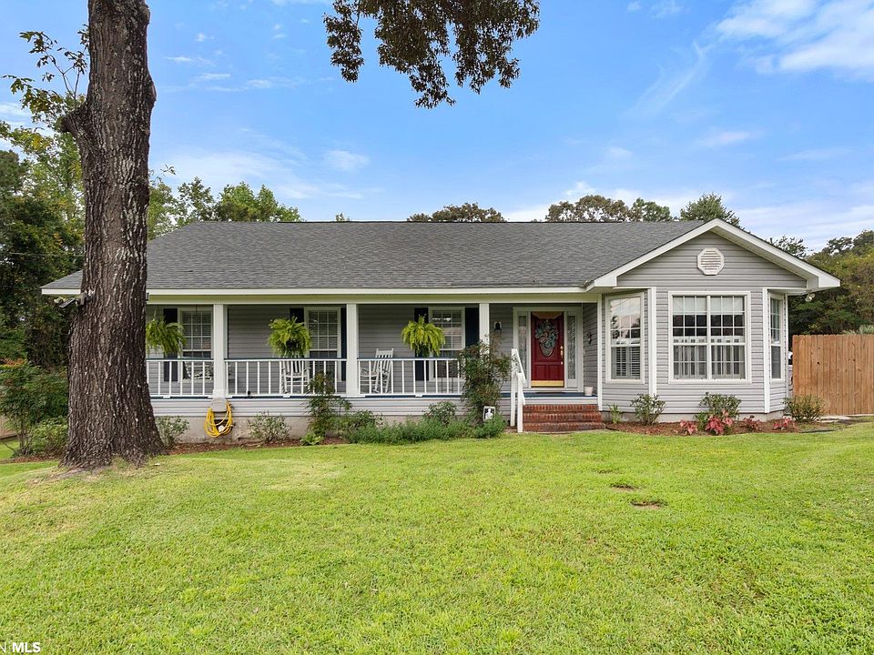 Unbelievable Saraland home---Corner lot, inground pool, ¾ an acre, 2068 square feet--all for under 300k!!!! Located on a ¾ acre corner lot with a pond off the back yard, there are fruit trees galore, 2 storage sheds, a dock to fish off of, a sprinkler system to keep the grass as pretty as it is now, a screened in back porch and even an inground pool. Inside you'll enjoy the woodburning fireplace in the large living room that opens up to the cozy kitchen with granite countertops and beadboard ceiling. The primary suite is extra large and the attached back has a large ceramic tile shower and dual vanities with plenty of storage. Roof was replaced in 2020 and HVAC was replaced in 2021. The neighborhood is large, but quiet, and this home is at the end of the street so traffic is at a minimum. Call for your showing today---this one really won't last long.