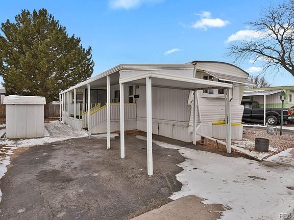 Welcome to this cozy 2 bed, 1.5 bath home centrally located in a 55+ community (at least 1 person must be age 55+ and no one under the age of 40 may reside). This home has easy access to the Pikes Peak Greenway Trail, University Village, I-25, Downtown, grocery stores, local coffee houses, and shopping. The floor plan is open and inviting with the living room, dining area, and kitchen all flowing seamlessly into one another. All kitchen appliances and the stackable washer-dryer are included! Updates during 2022 are: insulation underneath home, new membrane roof, new furnace, and new water heater. Water main was replaced under the driveway. The lot features a backyard area, private driveway for 2 vehicles, and 2 sheds. Sunroom off the covered porch is great for extra storage, plants, or a hobby room (not included in home's measurement). This home sits in a quiet community and has lots to offer. Schedule your showing today!