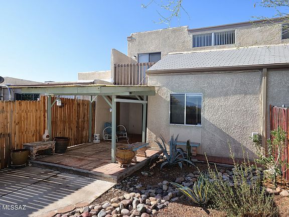 Don't miss this wonderful 2 BR, 2BA tnhm on one of the best lots in the subdivision with Mountain Views. Excellent central location close to The Loop, Racquet Club, Brandi Fenton park, the JCC and just 4 miles to the U of A! Gated entry welcomes you to the foyer and the spacious living and dining areas w/sky-high vaulted ceilings. Comfortable kitchen has plenty of cabinets & counter space, plus a pass through to the dining area. Cozy bkyd offers an extended covered patio, great views, and no neighbors behind. Spacious loft-style owner's suite has balcony, full bath, and 2 closets incl a huge walk-in closet. 2nd bdrm and full guest bath are downstairs. 1-C car garage, nice ceramic tile in all the right places, a sparkling commty pool, lovely grounds. HOA covers water, termites, and roof.