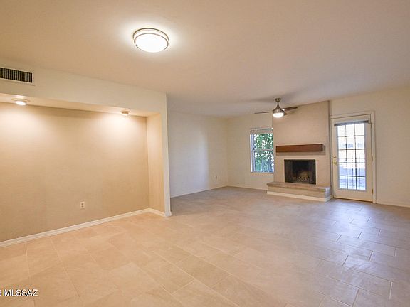 Lovely condo in Pima Park is ready for its new owners. Various upgrades include kitchen cabinets, refrigerator, stove, microwave, washer/dryer, updated tile in both baths, water heater, interior paint, and tile flooring throughout. The open living space offers a breakfast bar, dining area, and family room with wood-burning fireplace. Upstairs you will find two generously sized bedrooms, both with access to a large balcony. Step outside and stroll through the meticulously maintained common grounds brimming with mature greenery. Beat the heat this summer in the sparkling community pool. Centrally located, this property is close to the Loop, Tucson Racquet Club, Rillito Park Trail, UofA, and plenty of shopping/restaurants! This unit is equipped with an attached carport and ample parking.