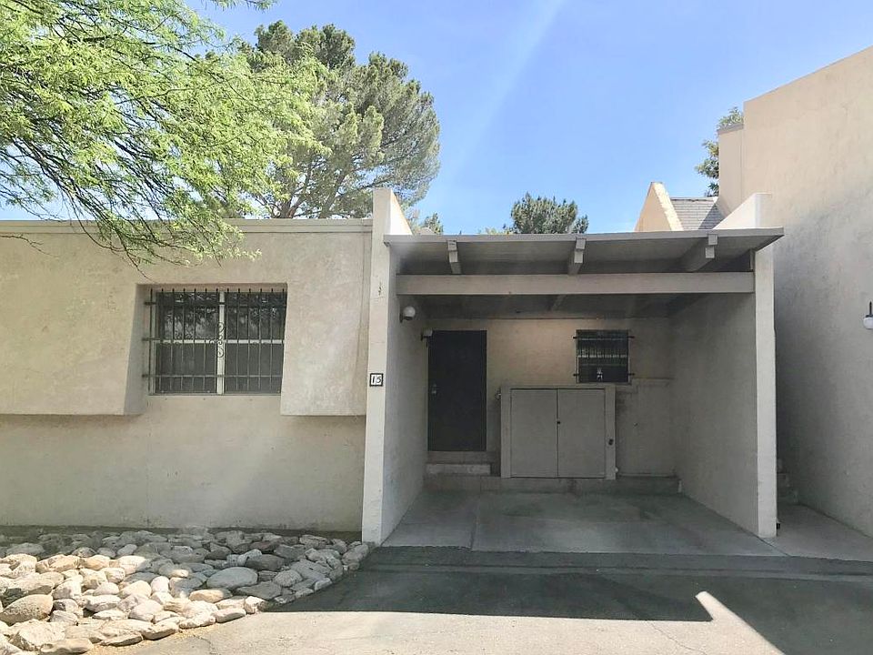 Clean, well maintained, TH-type condominium with mature vegetation, direct access from back door to pool! Newly painted throughout, new ceiling fan in dining area, new bathroom lighting, refreshed kitchen cabinets with new hardware and fresh paint. All appliances including Refrigerator, Dishwasher, Gas stove, and stackable washer/dryer. Spacious floor plan, 2nd bedroom has pocket doors, can be used as den/office. HOA, $220 month, covers: Water/Sewer, Building Insurance, Roof Maintenance, Building Exterior, Termite & Pest Control, Garbage collection, Grounds, Common Areas/Pool, Gated wrought iron fence around common area by pool. Short walk to Tucson Raquet Club and The Bike Loop. Subdivision is not approved for FHA/VA loan.