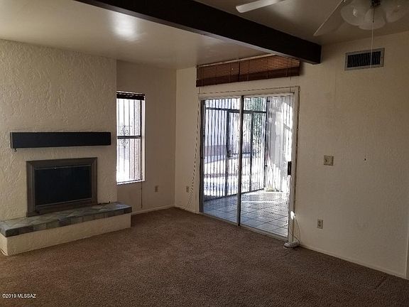Great location! Move in ready, fresh paint throughout and newer carpet. Desirable end unit with easy access to the river walk and Tucson Racquet & Fitness Club. Sparkling pool and easy access to the spacious common area with fruit trees. Won't last! Property is agent owned.
