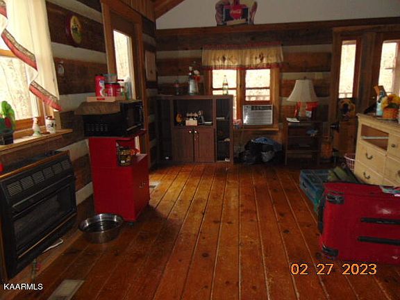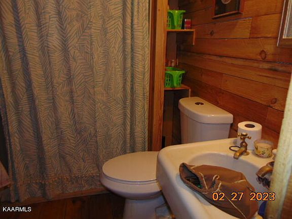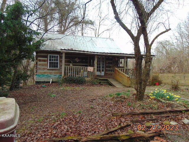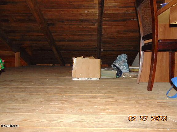 on a mountainous terrain. wraparound cover deck. features Living room ,Bfst area and Kitchen Combo. 2nd floor small 10 x 12 open loft if finished could be used as a 2nd . A full Unfinished basement entry on the outside only. Home needs TLC but could be a cute hide away with updates and TLC, Home is being sold in AS IS condition Seller make Convenient to everything.