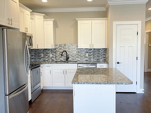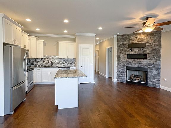 MOVE IN READY! Beautiful single level townhome with garage in North Cleveland, just minutes from the best restaurants and shops. Spacious, open floor plan with 9 ft ceilings, hardwoods, and tile flooring throughout. The kitchen island is perfect for cooking and gathering that leads right into the great room with a stone wall and gas fireplace. The master bedroom en suite features a double vanity, walk-in tile shower and walk-in closet with separate linen closet. Front guest bedroom is located next to a full bathroom and linen closet. Laundry closet includes washer and dryer. Back door takes you to a deck, great for entertaining. Do not miss this one! Listing Agent is serving as POA.