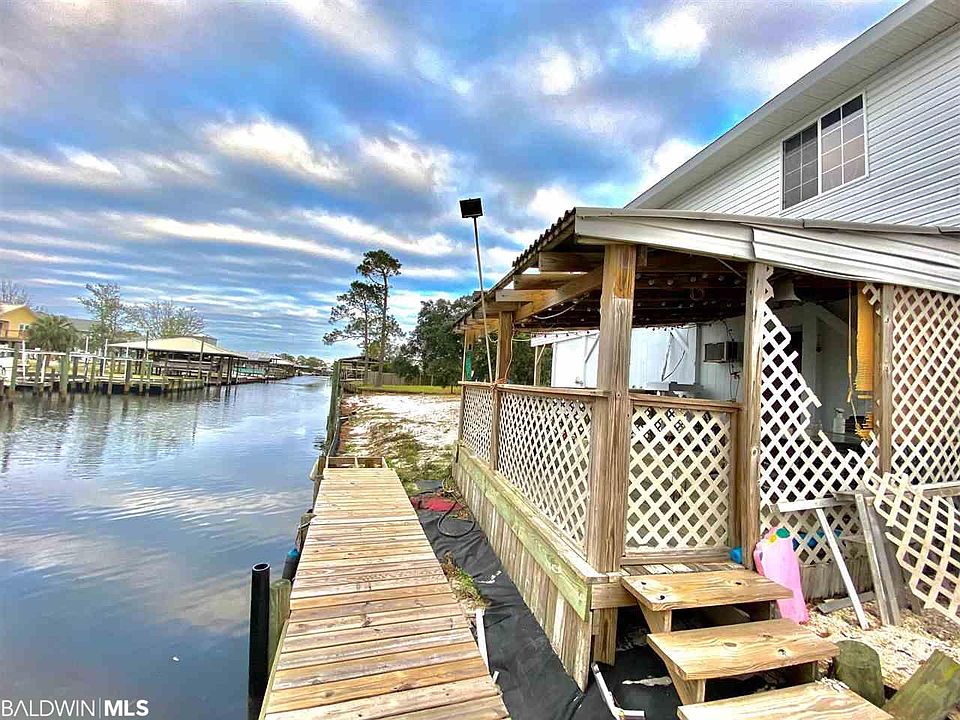This is a fantastic waterfront property in the heart of Orange Beach. This a special property because the lot is on the corner of the canal giving you an East water view all the way down the canal. With roughly 250 feet on the water this property offers lots of options. There is a home built on the property with 3 bedrooms and 2 bathrooms, covered patio, tons of storage downstairs, workspace and a boat slip. There is also an opportunity for a small development(inquire with sales representative for more details).