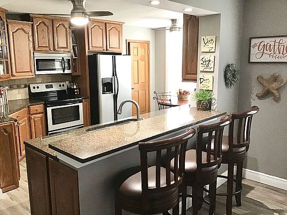 - Interior Features: Ceiling Fans(s), Eating Space In Kitchen, Open Floorplan, Split Bedroom, Walk-In Closet(s), Solid Wood Cabinets, Thermostat, Living Room/Dining Room Combo, Solid Surface Counters, Window Treatments